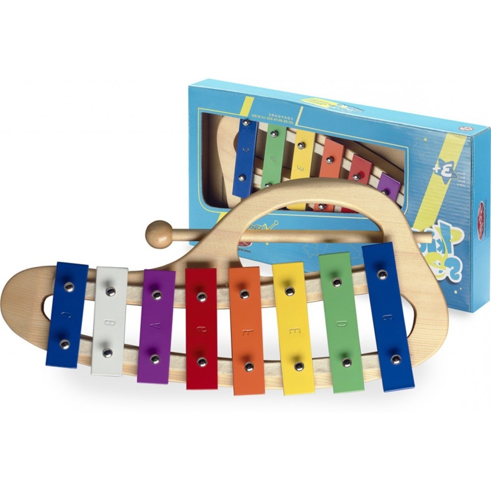 - Contine si un bat din lemn cu bila in capat cu care se ating sau bat placutele scotand sunete diferite si placute
