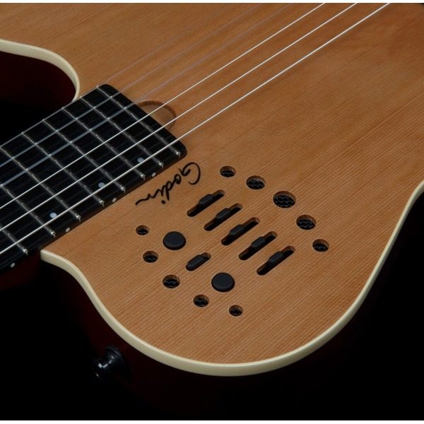 - Slim” se referă la lățimea piuliței de 1,715 inchi, care este cu doar 16 inci mai lată decât lățimea piuliței la chitarele noastre electrice standard. Dacă cântați cea mai mare parte la o chitară cu un gât destul de îngust (majoritatea chitarelor electrice cu corp solid), acesta este ACS-SA pentru dvs. Gâtul subțire al acestei chitare, împreună cu tehnica noastră de modelare Ergocut și raza de 16 inchi, fac o tranziție foarte ușoară pentru chitariștii cu corzi de oțel care doresc să integreze sunete de chitară cu corzi de nylon în muzica lor. Pe lângă noul gât, ACS-SA Slim are toate aceleași caracteristici care au făcut din ACS-SA un standard în industrie. Corpul de arțar cu frunze de argint cu camere și blatul de cedru au ca rezultat un instrument care este practic fără feedback, făcându-l ușor de utilizat chiar și în situații zgomotoase.