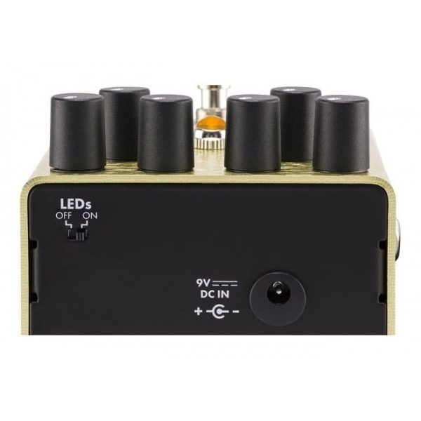 - blend/series toggle, bass boost toggle (On/Off), level, bypass footswitch