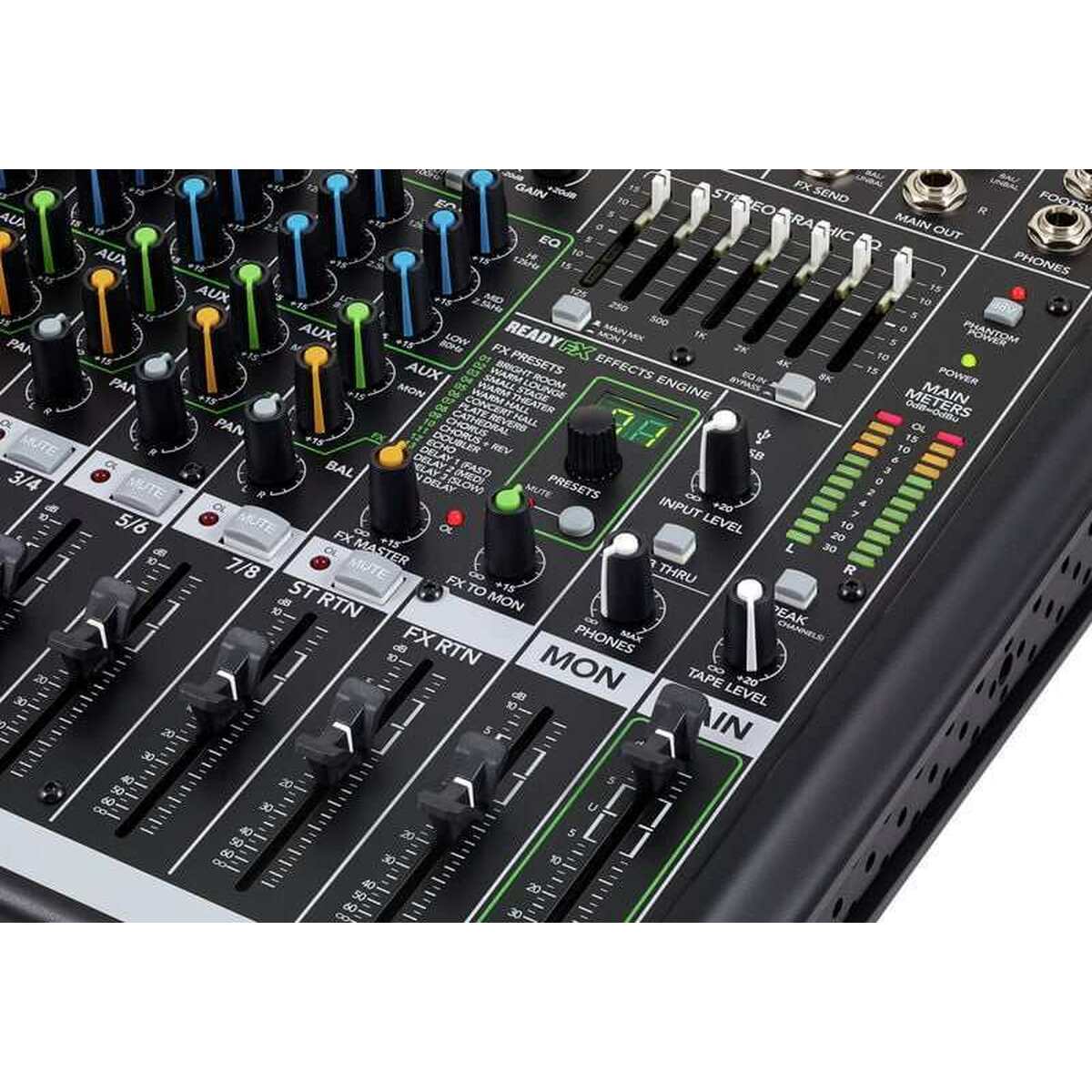 - EQ cu 3 benzi pentru toate canalele: 80 Hz, 2,5 kHz și 12 kHz