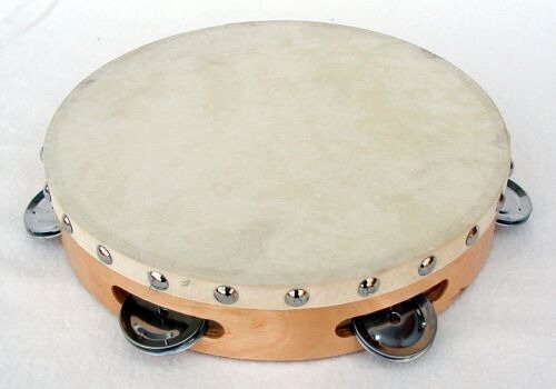 - Tamburina din lemn cu fata de bataie din piele , 8 "/20 cm